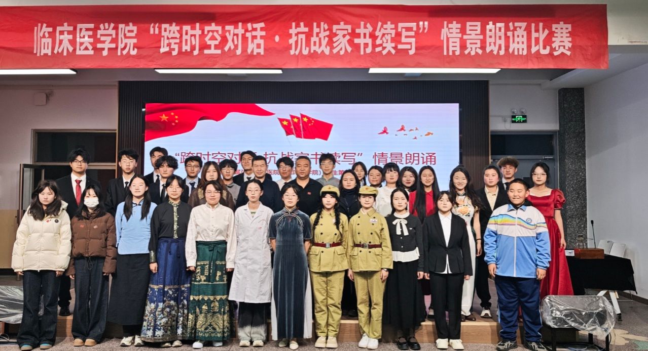 为传承红色基因、厚植家国情怀,引导医学生从抗战历史中汲取精神力量,2025年11月18日晚,临床医学院“跨时空对话,抗战家书续写”情景朗诵比赛在医学旧校区学生发展中心圆满举办,学院负责人、教学科研部主任、辅导员、学生党员及新生代表参加。