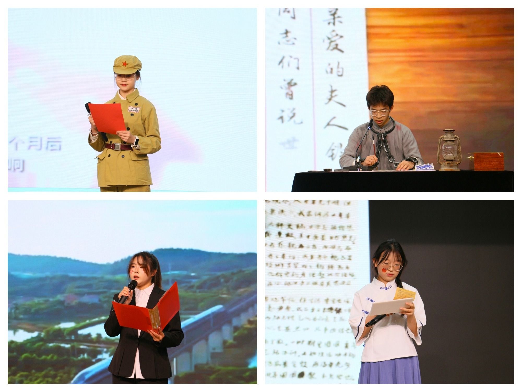 本次比赛以“续写抗战家书,对话革命先辈”为核心,面向全院学生征集原创续写作品。比赛现场,选手们认真准备表演素材,身着贴合主题的服饰,以饱满的情感、真挚的表达。他们时而激昂高亢,诉说先烈浴血奋战的壮志;时而温情脉脉,传递对先辈的敬仰与传承之志,生动展现了抗战先烈的家国大义与当代医学生的责任担当。